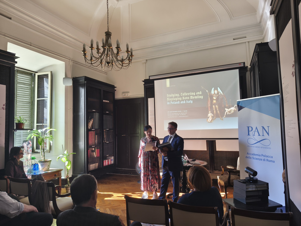 Prof. Beata Możejko i prof. Andrzej Woziński wygłosili referaty podczas seminarium „Collecting and Displaying Hans Memling in Poland and Italy”, które odbyło się 25 września 2025 r. w Stacji Polskiej Akademii Nauk w Rzymie.