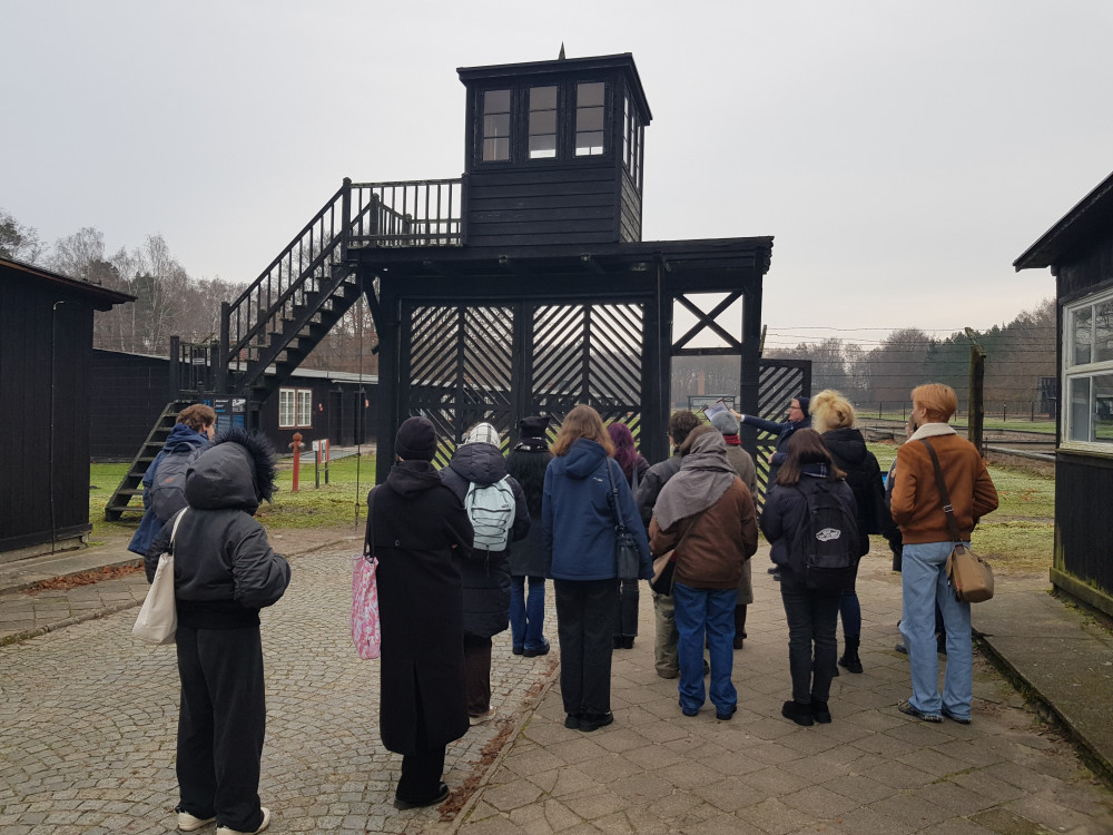 Dnia 20.11.2025 r. studentki i studenci I roku studiów licencjackich na kierunku ochrona dóbr kultury i muzealnictwo w ramach zajęć ze wstępu do antropologii kulturowej prowadzonych przez dr Aleksandrę Paprot-Wielopolską, odbyli wizytę studyjną w Muzeum Stutthof w Sztutowie. Podczas wizyty realizowano treści dotyczące antropologii pamięci. Po terenie dawnego obozu oprowadzał kierownik Działu Naukowego – dr hab. Marcin Owsiński, który później również opowiedział o znaczeniu tej przestrzeni jako miejsca pamięci. O nieoczywistych grupach marginalizowanych w KL Stutthof opowiedział mgr Prot Chruścielski, o narracjach żydowskiej pamięci o KL Stutthof dr Aleksander Michalak, a dr hab. Tomasz Gliniecki o tworzeniu narracji i formach jej upamiętniania w kontekście „wyzwolenia Stutthofu”. Spotkaniu towarzyszyły również zajęcia poświęcone zbiorom muzealnym, prowadzone przez opiekuna kolekcji – kustosz mgr Bogusławę Tartakowską w najnowszej przestrzeni magazynowo-ekspozycyjnej, zorganizowanej w dawnych stajniach obozowych.