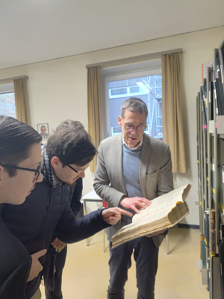 Studenci historii - III roku studiów licencjackich (specjalności Archiwistyka i zarządzanie dokumentacją oraz Historia w przestrzeni medialnej) i I roku magisterskich (specjalności Współczesne muzeum), pod opieką dr. Marcina Swobodzińskiego, wizytowali 24 listopada 2025 r. w Landesarchiv w Wolfenbüttel (Niemcy). W trakcie wizyty zapoznali się z historią, strukturą organizacyjną oraz zasobami archiwum, a także zwiedzili magazyny archiwalne. Uczestnicy mieli również możliwość obejrzenia najcenniejszych jednostek archiwalnych, zaprezentowanych przez Dyrektora archiwum. W ramach pobytu studenci odwiedzili również jedną z najsłynniejszych bibliotek w Niemczech – Herzog August Bibliothek w Wolfenbüttel, gdzie zapoznali się z jej bogatymi zbiorami oraz skorzystali z dostępnych zasobów.