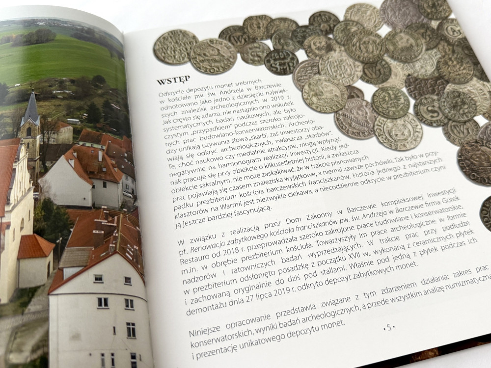 Broszura prezentuje najważniejsze wyniki badań przeprowadzonych nad niezwykłym depozytem 1084 monet z początku XVII wieku, odkrytym w 2019 roku podczas prac restauratorskich w kościele św. Andrzeja w Barczewie.